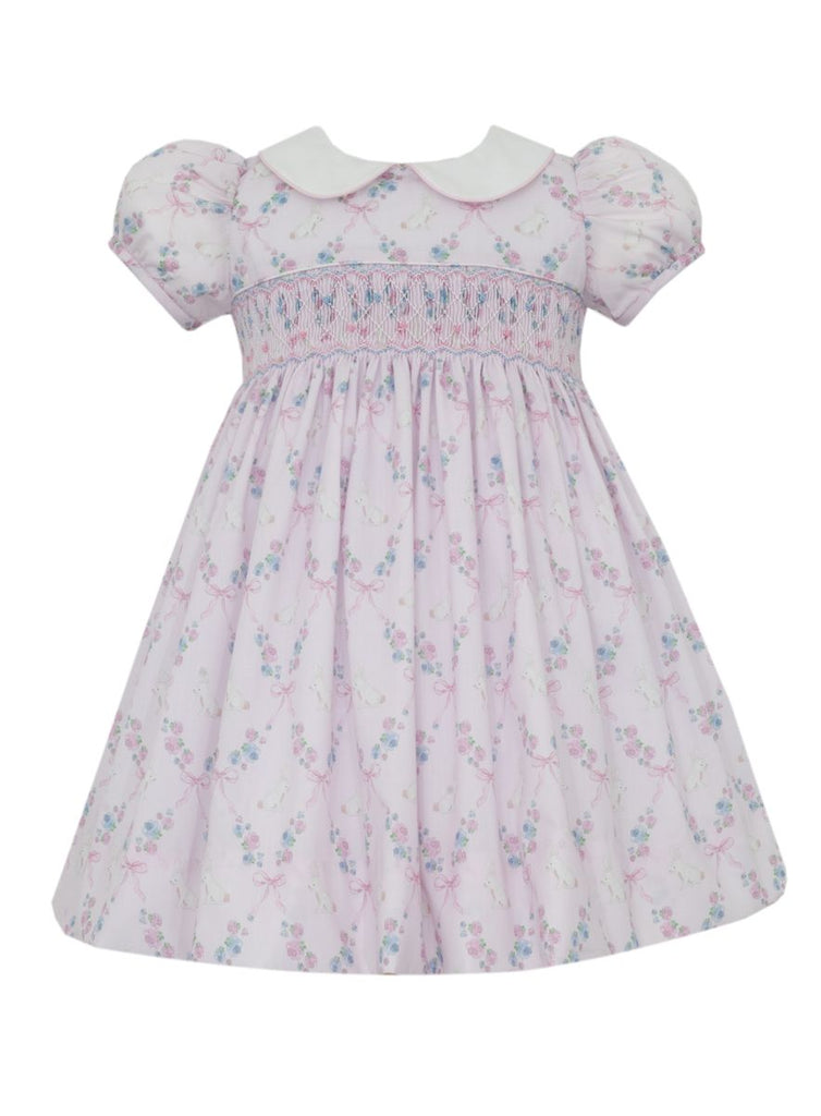 Pink Bunny Print Smocked Dress