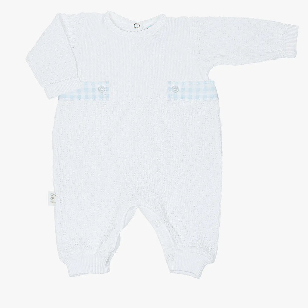 White Knit Blue Check Tab Romper