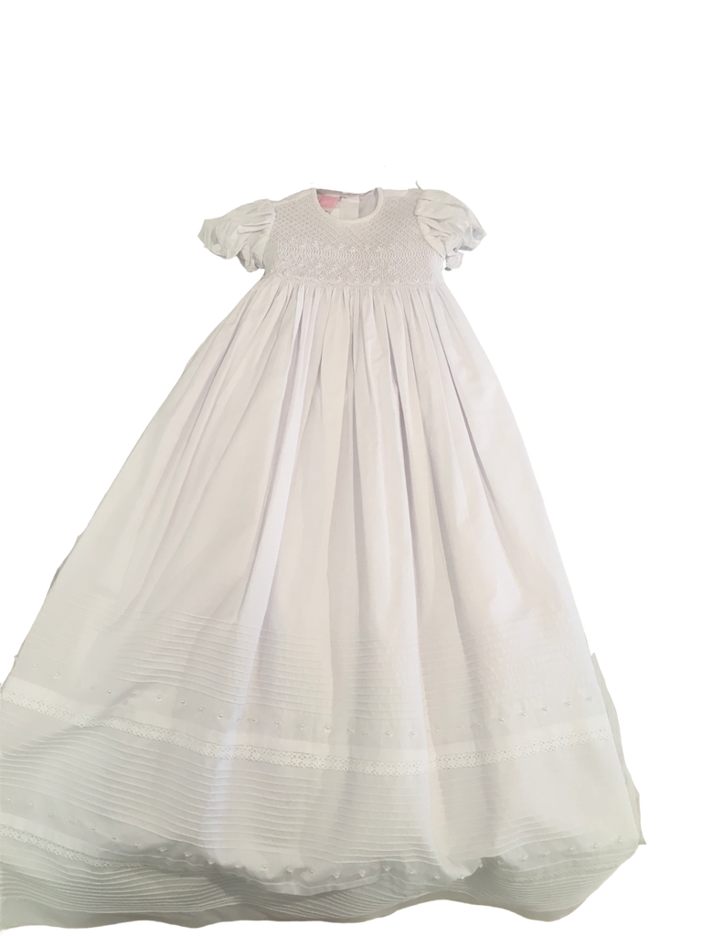 Will'beth Christening Gown with Smocking & Pearls